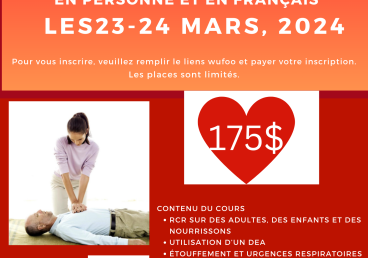 Lire la suiteCertification de premiers soins en français et en personne