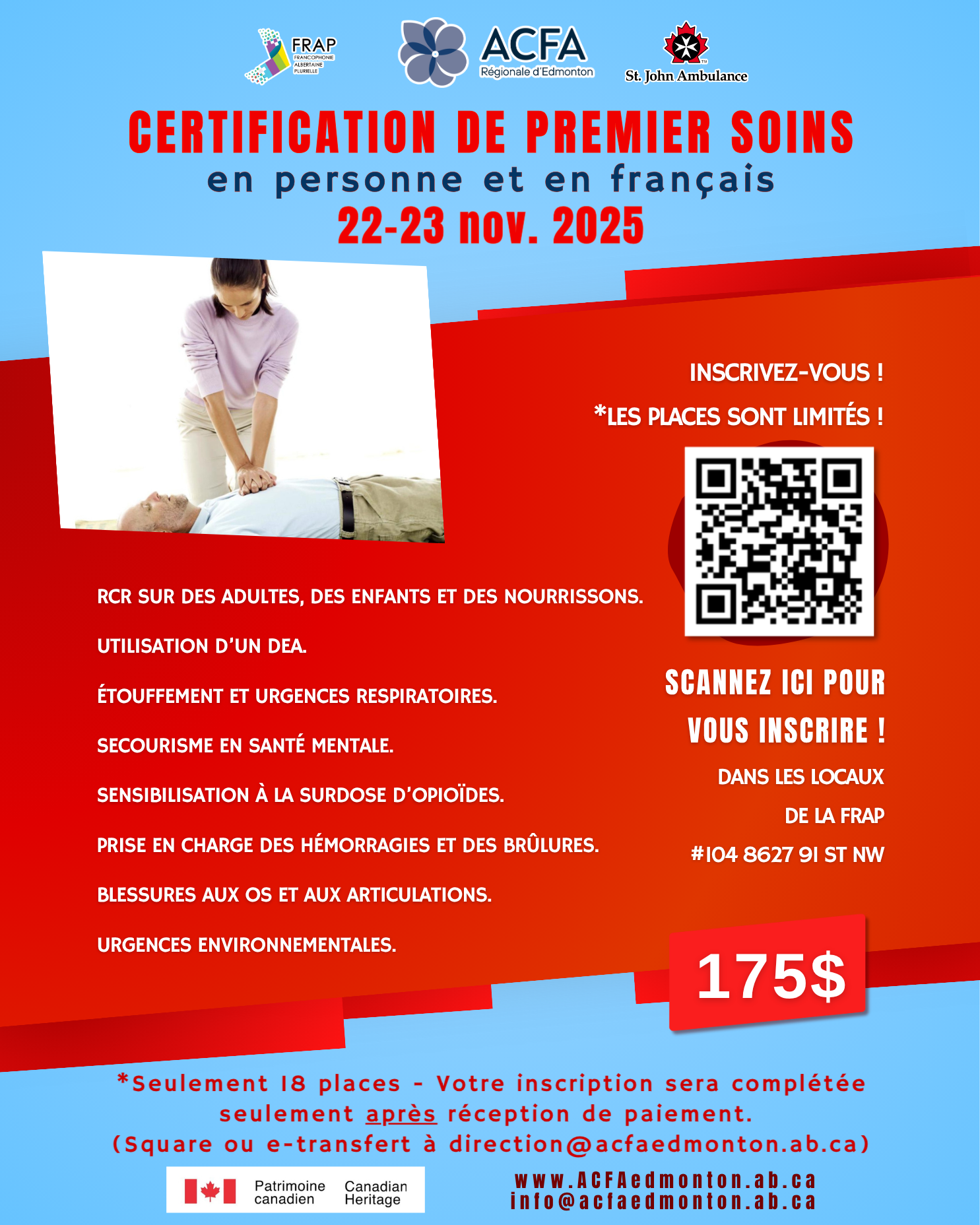 (Vous pouvez payer par Square via le formulaire en ligne ou par e-transfert à direction@acfaedmonton.ab.ca)